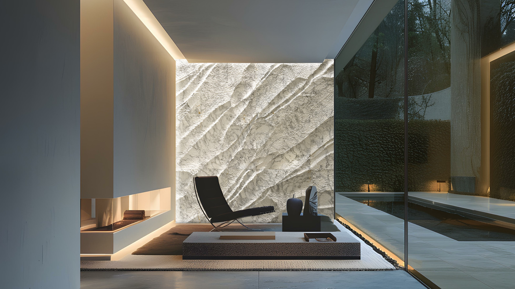 This carved, completely hand-chiseled surface unveils its pure, natural character, making every project unique and authentic.
