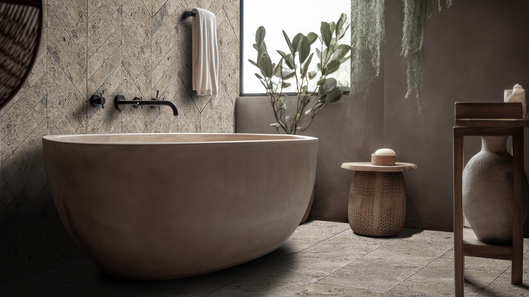 By means of a slow process that happens through the combined action of water and the sizzling of the pieces and without using acids or chemicals, the stone is enriched with a naturally aged look that mimics the work of time and natural elements on the stone.