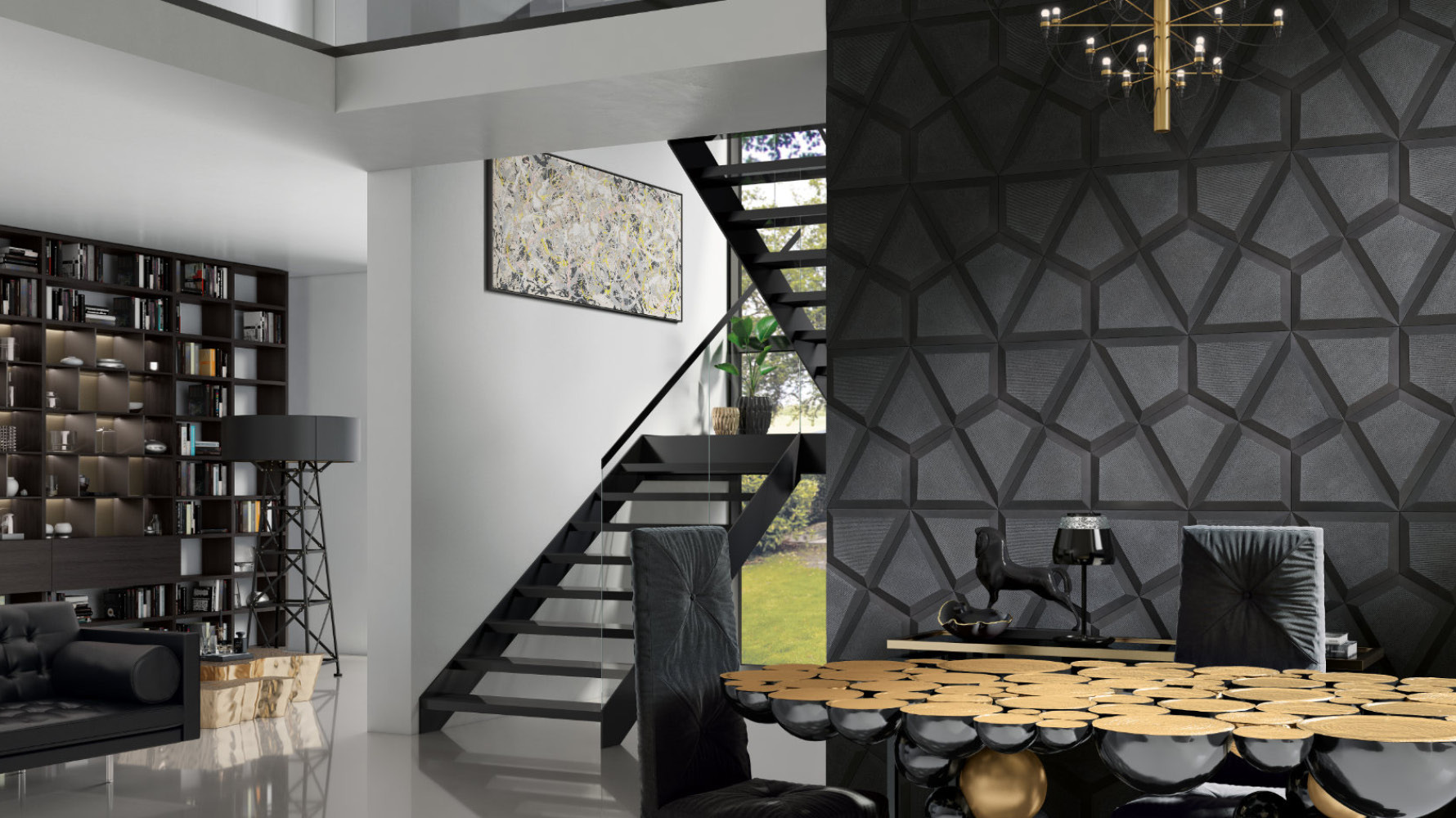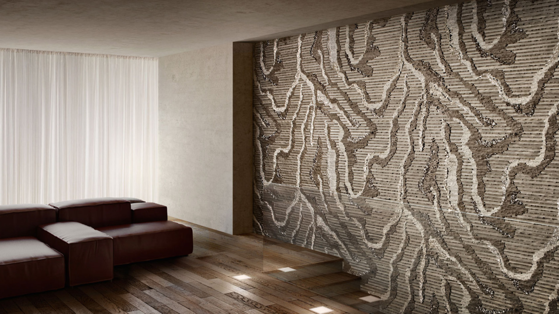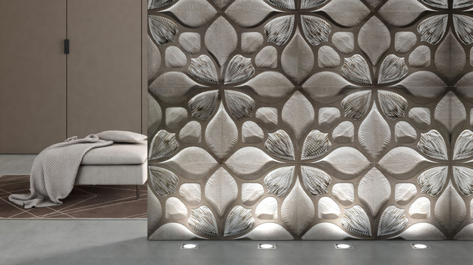 L’effetto diamantato nasce da una accurata lavorazione sui bordi della piastrella che permette di ottenere decisi ed evidenti ribassi dello spessore. I singoli pezzi accostati creano una particolare profondità e tridimensionalità e rendono le superfici più dinamiche, distintive e preziose.