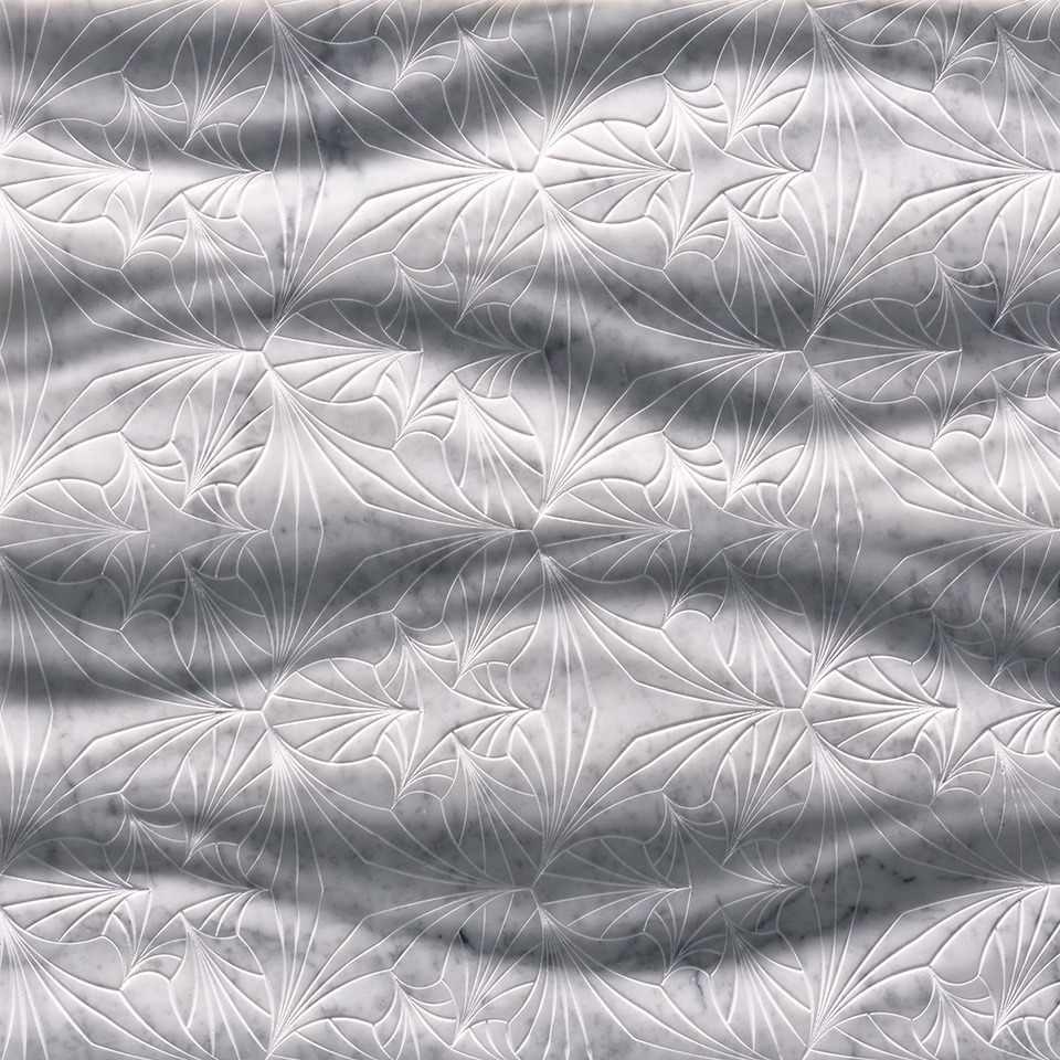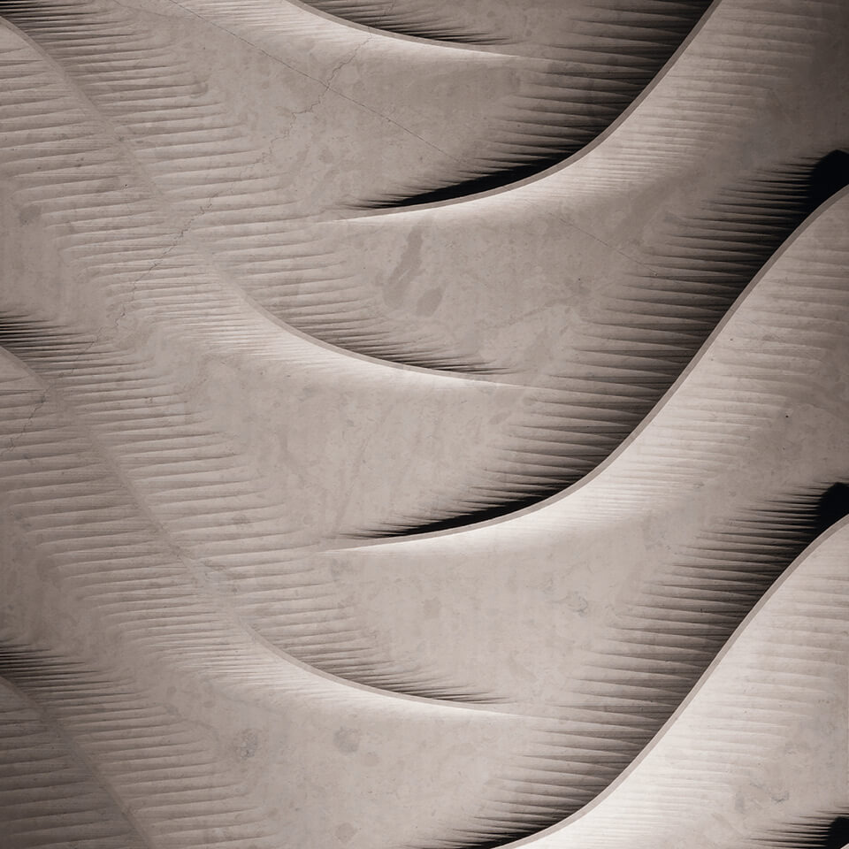 Fantasie, texture e ombre infondono vita nella pietra: le venature si fanno correnti, le superfici s’increspano di energia e la luce danza sui materiali rendendoli dinamici e cangianti. In questo gioco sospeso fra natura e sapienza artigianale, la pietra trascende la sua staticità per imitare il movimento e l’emozione.
